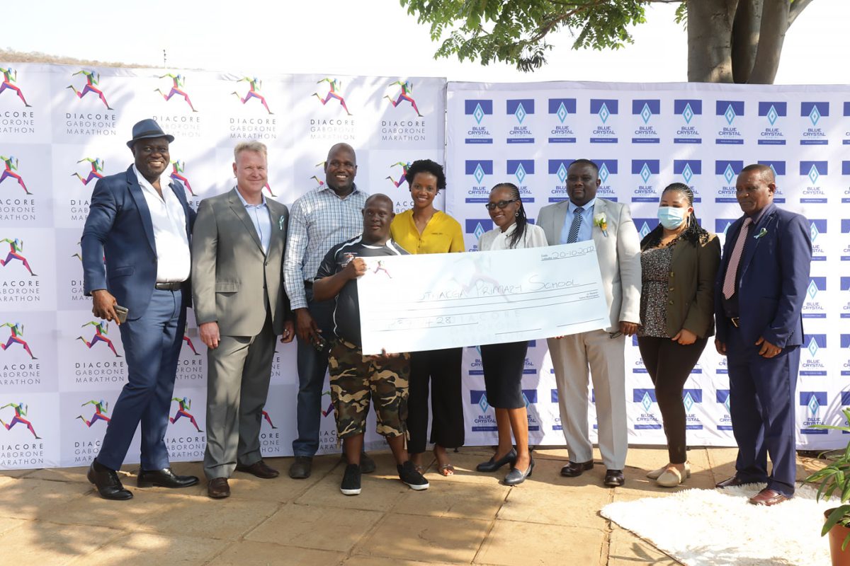 Blue Crystal, in collaboration with Diacore Gaborone Marathon, supports Bothakga School with a donation, nurturing a Sweet Future.